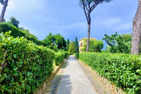 Built in the second half of the 19th century on a land owned by the Barberini family, the villa occupies the eastern slope of the Monte Mario hill