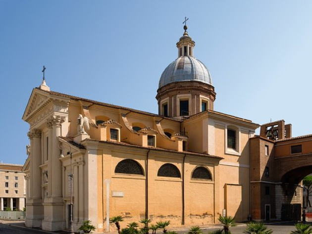 Au milieu du XVIIe siècle, après la découverte d’une ancienne fresque de la Vierge, considérée comme miraculeuse, l’église a été presque entièrement reconstruite sur un projet de Giovanni Antonio De Rossi, qui a construit la sacristie, la coupole et la nouvelle chapelle élégante de la « Madonna delle Grazie », avec son plan elliptique et sa petite coupole. La façade, en revanche, a été construite par Giuseppe Valadier en 1832 et illustre le néoclassicisme de la Restauration, qui reprend ici la typologie des églises vénitiennes de Palladio.