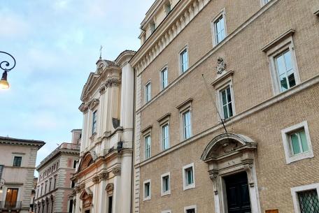 Overlooking a small square that it shares with the 18th-century Palazzo Braschi, it is one of the place