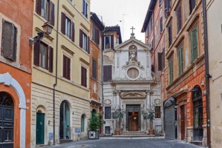 The small church along Via delle Botteghe Oscure, between Piazza Venezia and the