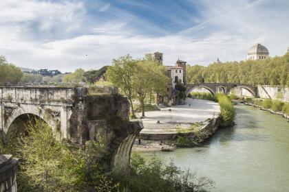 Risalgono all’Ottocento le ultime grandi alluvioni. Le lapidi in via dell’Arancio e in via Canova ci riportano alla piena del 1805, quando il fiume invase le zone da Ripetta al Corso, arrivando a piazza Navona, alla Lungara e al Ghetto. L’acqua superò i 16 metri di altezza anche il 10 dicembre 1846, come testimonia la lapide nel cimitero sotterraneo della chiesa di Santa Maria dell’Orazione e Morte in via Giulia. La piena più tragica fu però sicuramente quella tra il 26 e il 29 dicembre 1870, a tre mesi dalla breccia di Porta Pia, quando le acque superarono i 17 metri. La violenza del fiume, attestata da una quarantina di scarne lapidi, le vittime e i danni suscitarono un’impressione tale da far venire per la prima volta a Roma il Re Vittorio Emanuele II e da spingerlo ad adottare rimedi risolutivi. Su progetto di Raffaele Canevari, si decise così di costruire alti muri di contenimento: terminati definitivamente nel 1926, i cosiddetti muraglioni del Tevere misero fine al continuo e periodico pericolo, modificando però radicalmente tutto l’ambiente tiberino e distruggendo paesaggi e ambienti unici come i porti di Ripetta e Ripa Grande. La lapide più recente è nel portico di San Bartolomeo all’Isola, con la scritta “Alluvione del 17 Decem 1937” su una semplice riga orizzontale: i nuovi muri di sponda contennero molto bene la corrente e, pur raggiungendo comunque livelli record, le acque causarono soltanto modesti allagamenti.