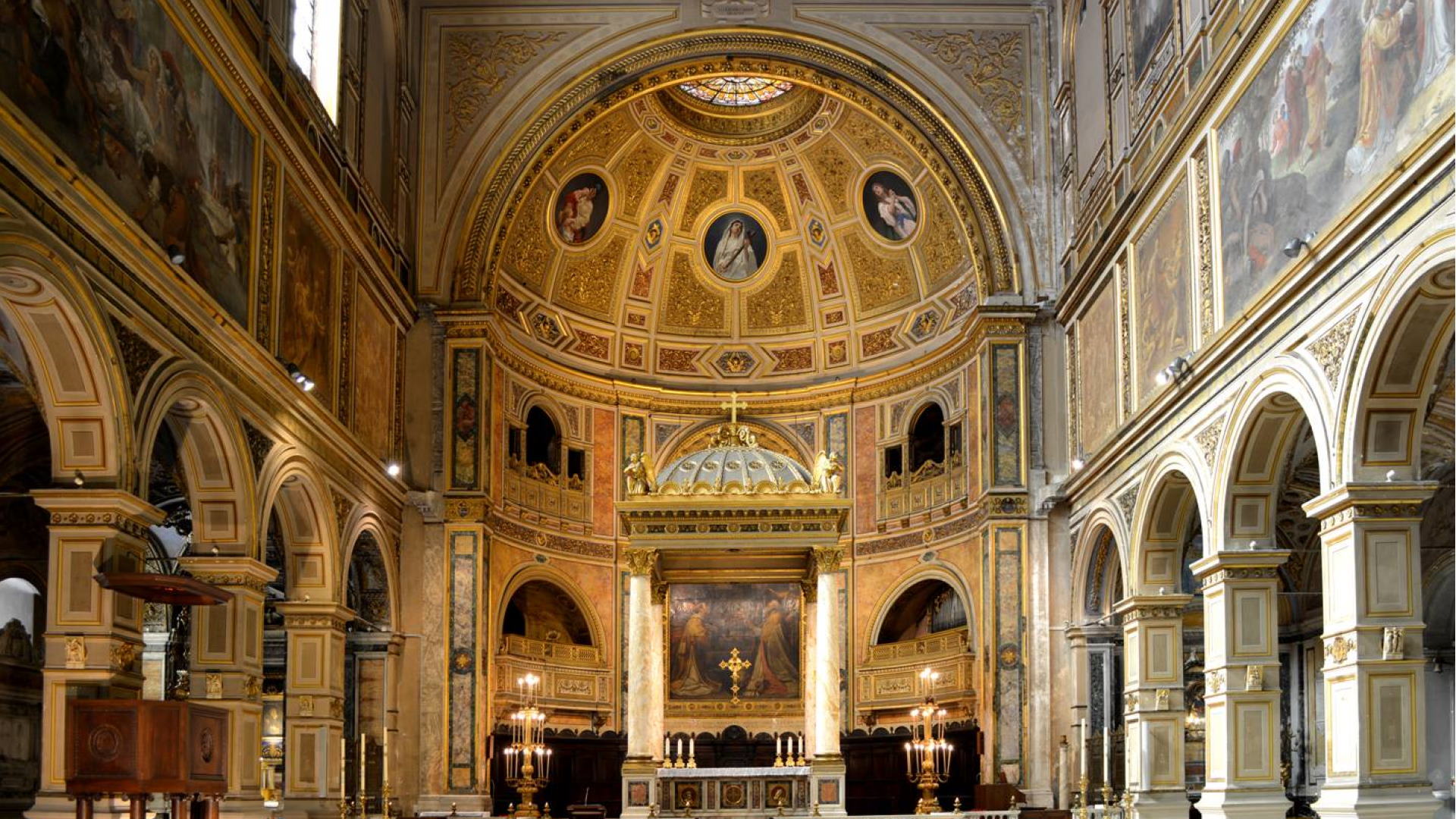 È una delle chiese di Roma dalle origini più antiche ma è anche “nascosta” alla vista. Priva di facciata, la chiesa è infatti completamente inglobata nel grande palazzo della Cancelleria sull’omonima piazza che si apre su corso Vittorio Emanuele II, a pochi passi da Campo de’ Fiori. Secondo la tradizione, la chiesa fu costruita per la prima volta da papa Damaso I nella sua casa intorno al 380, e poi restaurata dai pontefici Adriano I (che vi fece portare le reliquie di papa Damaso, tuttora conservate sotto l’altare maggiore) e Leone III tra l’VIII e il IX secolo. Alla fine del Quattrocento, forse su progetto di Bramante, fu integralmente ricostruita e leggermente spostata a nord quando il cardinale Raffaele Riario fece restaurare il palazzo a cui la chiesa è inestricabilmente connessa, diventato poi sede della Cancelleria Apostolica.