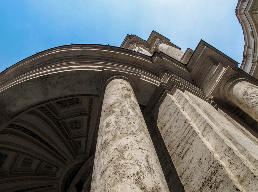 Commissionato dal cardinale Oliviero Carafa intorno al 1500, il Chiostro del Bramante è una costruzione lineare ed elegante, opera di Donato Bramante che, trasferitosi da Milano a Roma, diventerà qui primo architetto di Papa Giulio II e grande rivale di Michelangelo. Fa parte del complesso che comprende anche l’attigua Chiesa di Santa Maria della Pace.