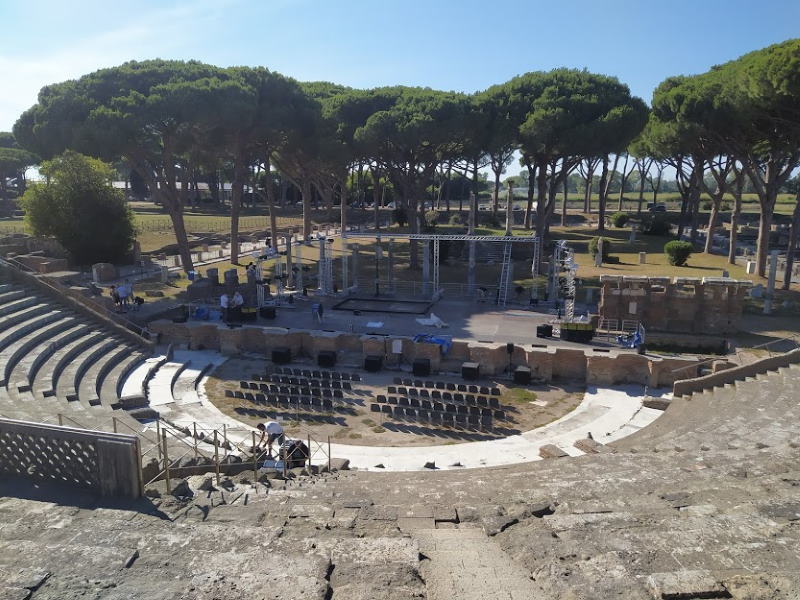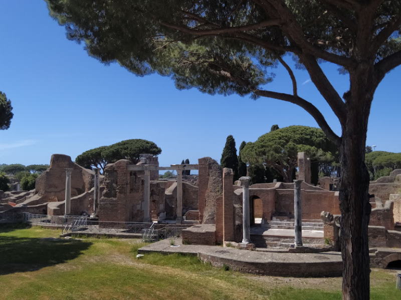 A Ostia antica c’è tutto questo. O meglio, c’era: gli edifici religiosi erano grandi templi rivestiti in marmo: il più grande di tutti, il Capitolium, dedicato a Giove, Giunone e Minerva, si trovava proprio nel centro della città, nella piazza del Foro. Il teatro vi si para innanzi mentre percorrete la via principale, il decumano massimo: un edificio che poteva ospitare fino a 4.000 spettatori. Quanto alle terme, ne trovate quante volete, una più lussuosa dell’altra, con pavimenti a mosaico davvero prestigiosi: le Terme di Nettuno, per esempio, sui cui pavimenti è raffigurato il dio Nettuno alla guida di 4 cavalli marini, o le Terme di Porta Marina, sui cui pavimenti sono raffigurati vari atleti intenti ad allenarsi nella propria disciplina sportiva.